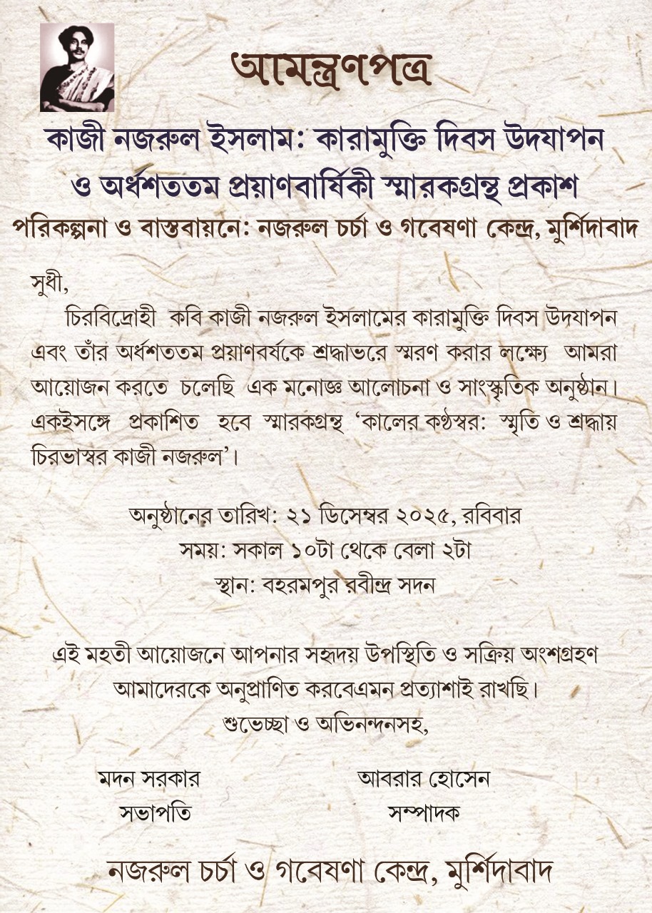 ৩১ অগাস্ট ২০২৫ নজরুল প্রয়াণ দিবসের অনুষ্ঠানসূচী